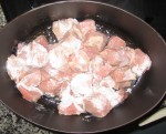 - In una pentola, fare riscaldare 2 cucchiai d’olio e fare rosolare i pezzi di carne infarinati. Quando saranno dorati, toglierli dalla pentola e metterli da parte.