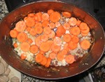 - Mettere cipolla e carote nella pentola e farle rosolare.