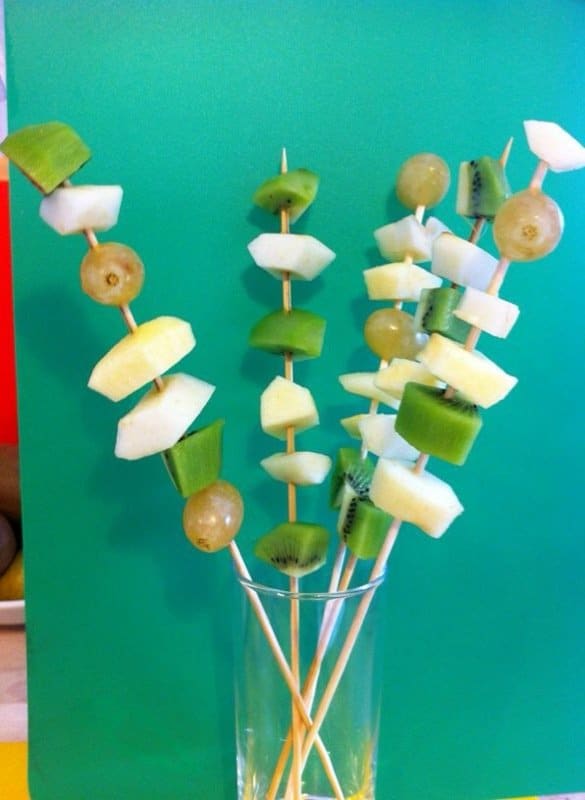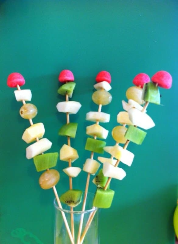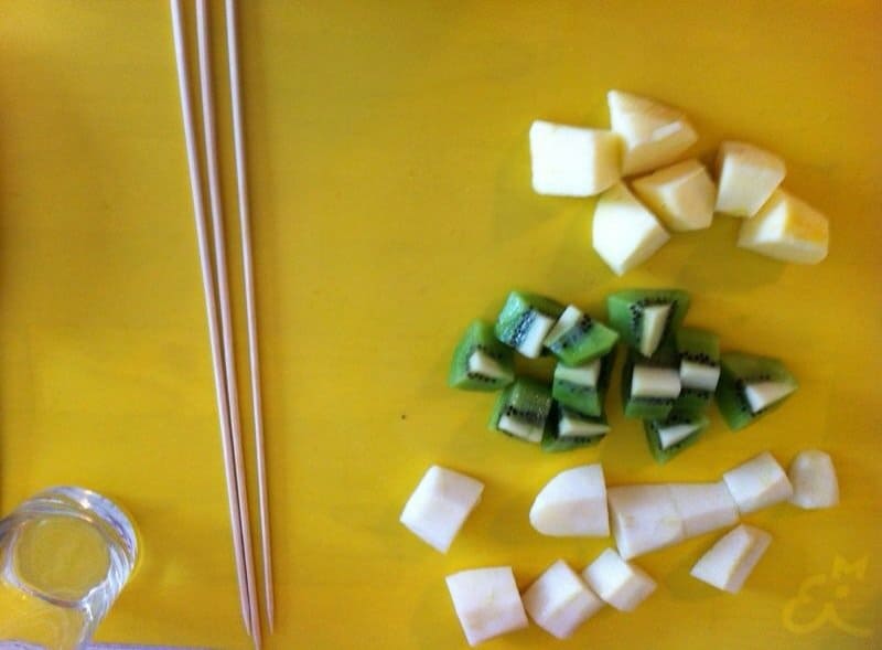 I bambini possono partecipare alla realizzazione di questi spiedini ma non devono mangiare tutte le caramelle…
