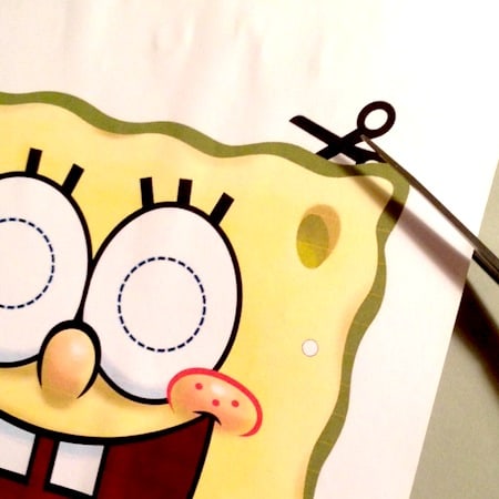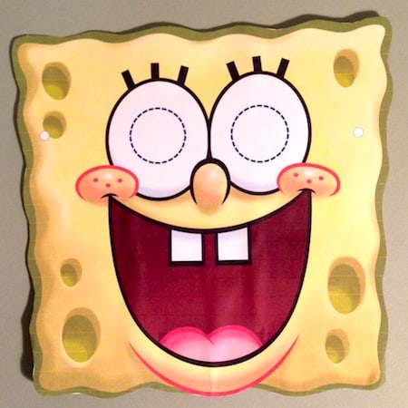 La maschera di SpongeBob, il protagonista della serie ambientata a Bikini Bottom, una cittadina sul fondo dell’Oceano Pacifico. SpongeBob, con i suoi bellissimi panatloni quadrati, lavora in un grande fast food dove cucina i migliori panini di tutto l’Oceano!