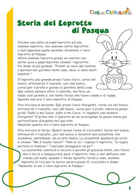 Per stampare la storia, illustrata con un disegno da colorare, basta scorrere la pagina verso il basso e cliccare sulla storia impaginata, dove segnato: si aprirà una seconda finestra, con la storia di Pasqua in formato pdf pronta per essere scaricata e/o direttamente stampata.