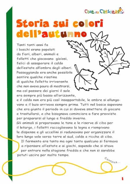 Una bella storia sui colori dell’autunno adatta sia ai bambini della Scuola dell’infanzia che seguono un percorso sui colori con attività sui colori legati alle stagioni sia ai bambini della Scuola primaria. Una leggenda che ci racconta come sono nati le bellissime tonalità che osserviamo in autunno.