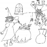 Strega con pentolone da colorare Disegno di una strega che prepara una schifosissima pozione in un grande pentolone, in mezzo a ragni e ragnatele! Cliccare sul disegno per stamparlo: