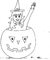 Streghetta nella zucca da colorare Un disegno per Halloween da colorare: una giovane strega sorridente all’interno di una grande zucca. Cliccare sul disegno per stamparlo: