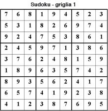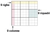 • La griglia di sudoku è composta da 81 caselle raggruppate in: 9 righe, 9 colonne e 9 riquadri. 9 numeri diversi sono posizionati nella griglia in modo che ognuno di essi figuri in ogni riga, ogni colonna e ogni riquadro, senza mai ripetersi.