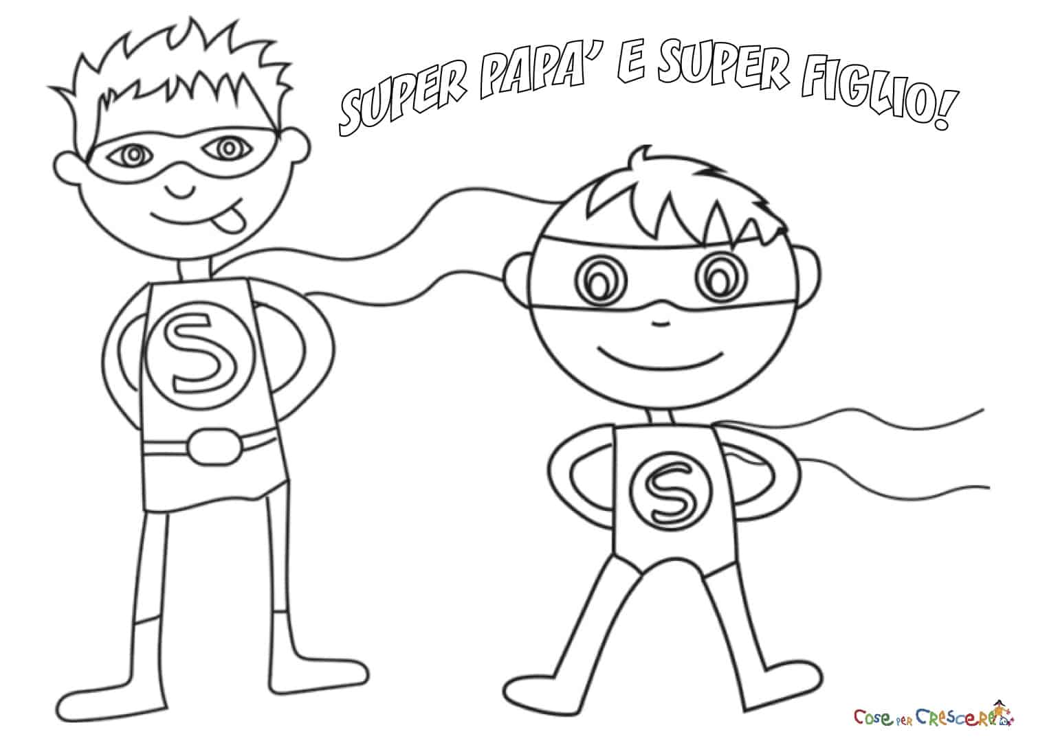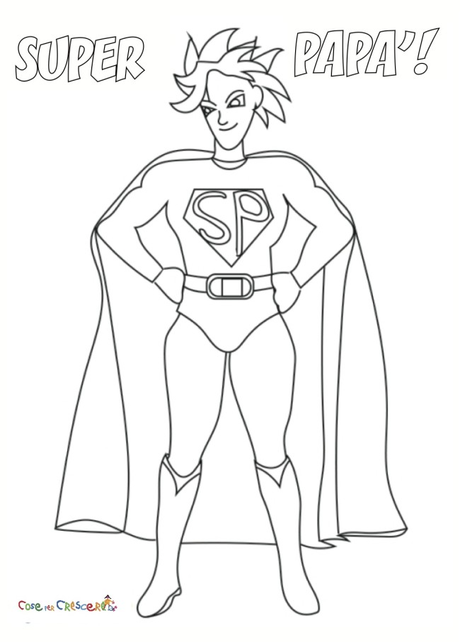 Super papà da colorare Un disegno da colorare e da regalare al papà per il suo compleanno o per la Festa del papà. Il disegno di un Super papà in stile manga, per il papà più forte di tutti! DISEGNO DA STAMPARE Cliccare sul disegno per stamparlo: