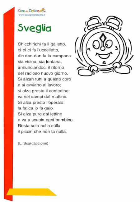 Una poesia da proporre ai bambini della scuola primaria i primi giorni di scuola, una poesia per bambini scritta da L. Scardaccione che ci parla della sveglia che segna il cambiamento, la fine delle vacanze estive e la ripresa delle attività…