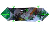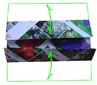 - Piegare i lati superiori ed inferiori ad angolo retto. Il lavoro evidenzia due piegature che permettono di posizionare i bordi della scatola ad angolo retto. Alzare anche la punta sinistra per formare la scatola. Fase 11 e 12 dello schema.