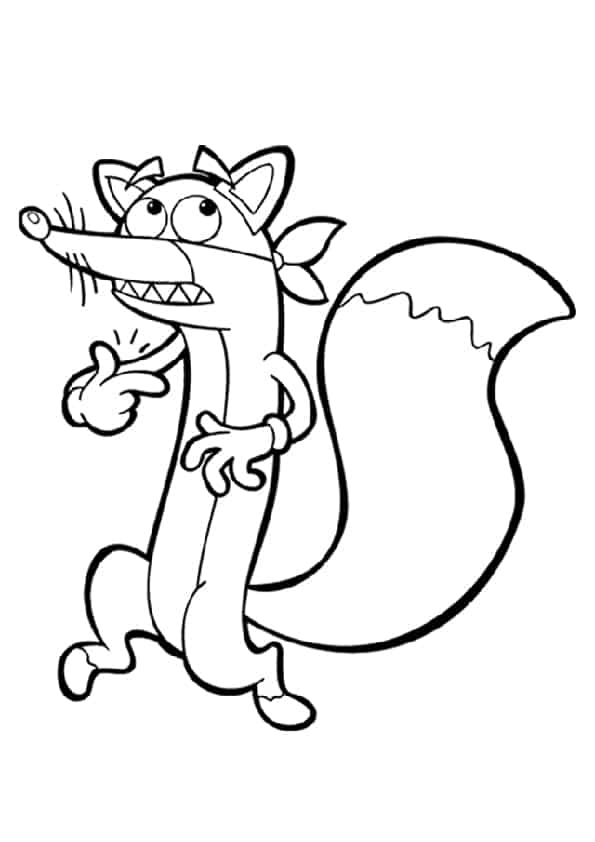 Un disegno della volpe ladruncola e dispettosa che aiuta sempre Dora l’esploratrice e i suoi amici. Swiper cerca sempre di rubare qualsiasi cosa ma può essere fermata se gli viene detto: “Swiper non rubare!” per tre volte di fila. Un disegno da stampare e colorare gratuitamente.