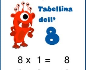 Come per le altre tabelline, puoi stamparla e ritagliarla, in modo da averla sempre a portata di mano. Ritaglia anche il buco segnato in alto, infila un nastro colorato (che chiuderai con un nodo) e unisci tutte le tabelline!