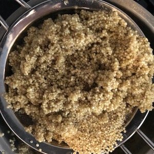 - Versare la quinoa in un colino e sciacquarla per 2-3 minuti per eliminare la saponina.