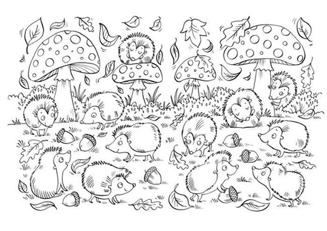 Un disegno dell’autunno da colorare per bambini, da stampare gratuitamente. Un disegno che rappresenta un simpatico sottobosco popolato da tanti ricci che si divertono e si riposano protetti da grandi funghi, in mezzo a foglie cadute dagli alberi e deliziose ...