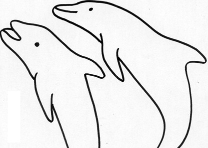 Disegno di una bellissima e sorridente coppia di delfini, da stampare e colorare. ...