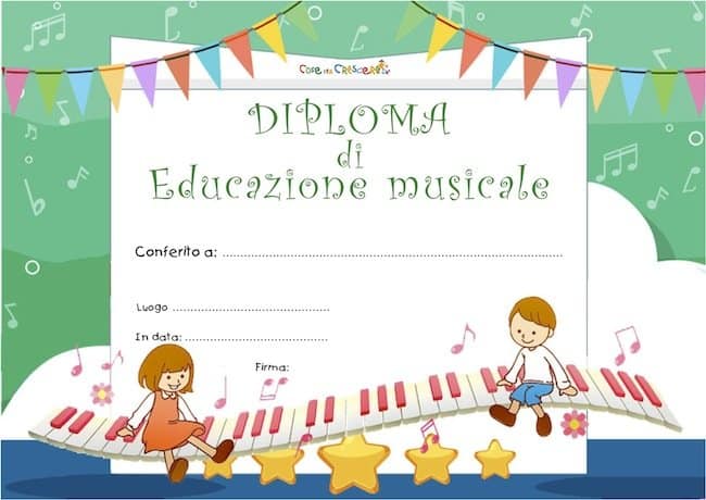 Un diploma di fine corso di educazione musicale per i bambini che frequentano la scuola primaria da stampare gratuitamente, compilare con il nome del bambino o della bambina, la data e il luogo e, per finire, la firma dell’insegnante. Diploma ...