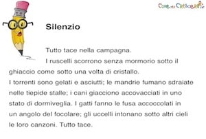 Un dettato per i bambini della scuola primaria, un dettato che ci parla del silenzio tipico dell’inverno. Un testo con difficoltà miste, adatto alle classi seconda, terza e quarta. Per stampare il dettato, basta scorrere la pagina verso il basso ...