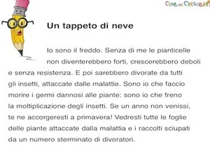 Sei alla ricerca di un testo sull’inverno facile e coinvolgente da proporre ai bambini? Questa pagina propone un testo semplice sull’inverno da leggere o da dettare, ideale per alunni della scuola primaria, in particolare per le classi prima e seconda. ...