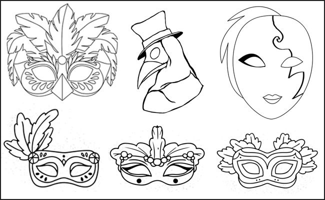 Un disegno con due belle maschere di Carnevale sorridenti da stampare e colorare gratuitamente. ...