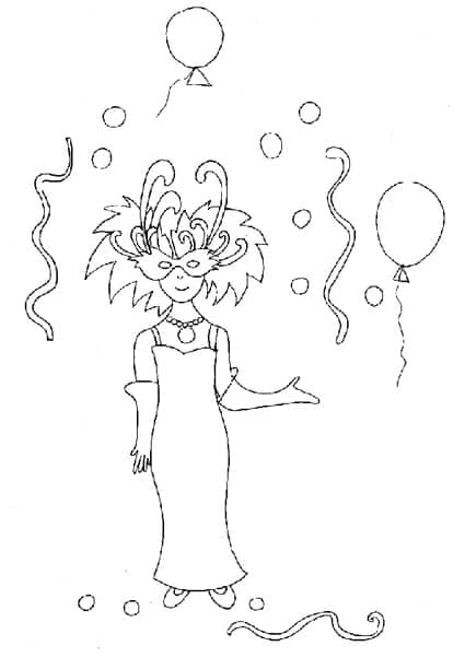Disegno di una ragazza mascherata ed in costume, ad una festa di Carnevale, da stampare e colorare in occasione del Carnevale. Cliccare sul disegno della ragazza mascherata per stamparlo: ...