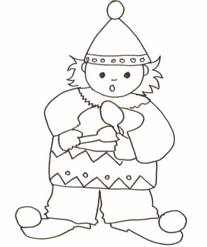 Disegno di un clown bambino che suona un bel tamburo, da stampare e colorare per tutti i bambini che vogliono sognare il mondo del circo. ...