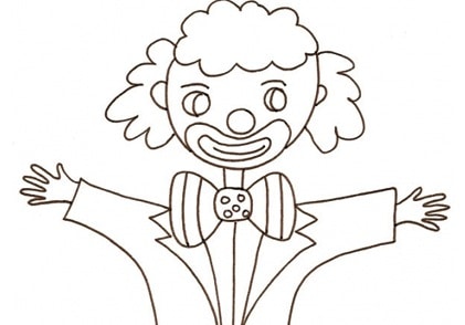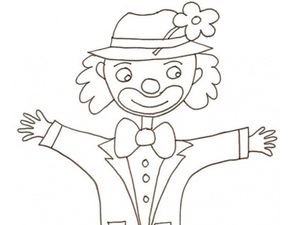 Disegno di un clown con un grande fiore sul cappello, da stampare e colorare, per divertirsi e sognare giocando con il mondo del circo. ...