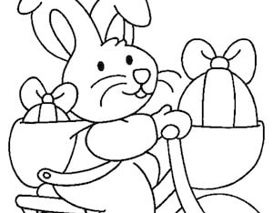 Il disegno di un coniglietto di Pasqua da colorare, da stampare gratuitamente. Un simpatico coniglio che se ne va in giro in bicicletta e che trasporta due bellissime uova di Pasqua! Un disegno da colorare, adatto ai bambini più piccoli. ...