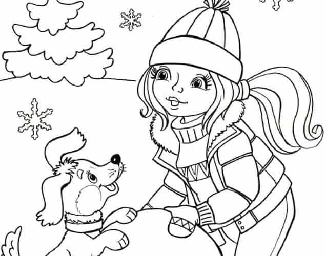 Un disegno da colorare durante l’inverno che piacerà alle bambine: una ragazza che gioca nella neve con il suo cagnolino. Stanno costruendo un grande pupazzo di neve! Un disegno da stampare gratuitamente e da colorare. Per stampare il disegno, basta ...