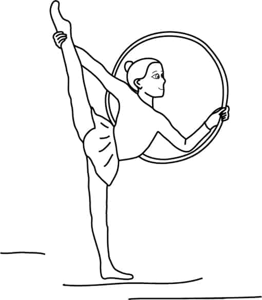 Disegno di una graziosa ballerina che stende la gamba verso l’alto, tenendo il piede nella mano. Un’affascinante ballerina dai lunghi capelli con un bel vestito che farà sognare le vostre bambine. ...