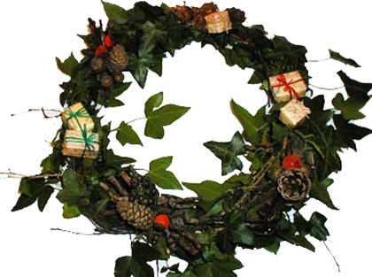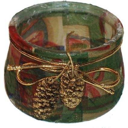 Un lumino di Natale decorato con piccole pigne dorate ...