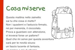 Cosa mette un bambini nello zainetto il primo giorno di scuola? Ce lo racconta questa piccola poesia da proporre ai bambini delle prime classi della scuola primaria e della scuola dell’infanzia. Questa mattina nello zainetto sai tu che cosa ci ...