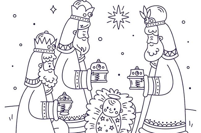 Un disegno dei tre Re Magi che camminano nel deserto seguendo la stella che li porterà fino a Gesù bambino, da stampare gratuitamente e da colorare per l’Epifania. Un modo per parlare con loro del significato religioso di questa festa. Nella ...
