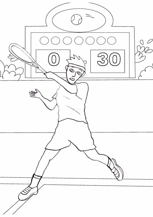 Disegno di un tennista pronto a sfidare il suo avversario, da stampare e colorare. ...