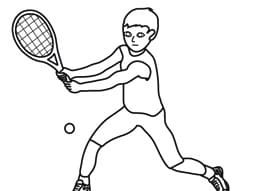 Disegno di un giocatore di tennis che colpisce la pallina di rovescio, da stampare e colorare. ...