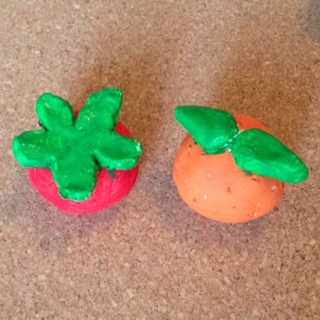 - Per fare l’arancia, modellare una pallina e bucarla più volte con uno stuzzicadenti per fare “la buccia d’arancia”.