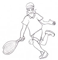 Tennista in partita da colorare Disegno di un giocatore di tennis durante una partita da stampare e colorare. Cliccare sul disegno per stamparlo: