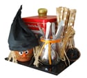 • Sistemare i fili di rafia sulla testa della Befana. Fare una palla di carta di giornale ed infilarla nel vaso in modo da incastrare e fissare i capelli della Befana. Ritagliare un triangolo di carta crespa nera (la base del triangolo deve essere un pò più grande della circonferenza del vaso). Formare il cappello e fissarlo al bordo del vaso con un pò di colla o pezzetti da nastro adesivo trasparente.