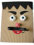 - Incollare gli occhi sulla maschera e ritagliare il retro della maschera a livello degli occhi (in modo che il bambino possa vedere quando avrà indossato la testona).