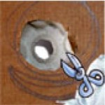 - Disegnare e ritagliare un piccolo quadrato intorno a questo punto centrale. Servirà ad infilarci il naso.