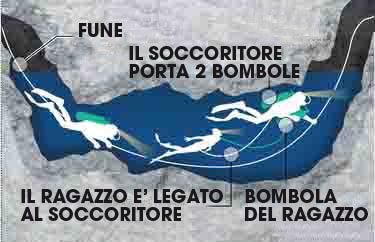 Il percorso non era facile e prevedeva un chilometro da fare interamente sotto acqua e tre chilometri da fare a piedi prima di vedere la luce. I ragazzi indossavano delle maschere speciali più facili rispetto a quelle dei sub e venivano accompagnati verso l’uscita agganciati al soccorritore da una corda e da un’imbracatura da due sommozzatori. Lungo il percorso erano stati messi dei segnali luminosi piatti. Una parte della grotta vicino all’uscita era stata in parte prosciugata per permettere ai ragazzi di poter camminare.