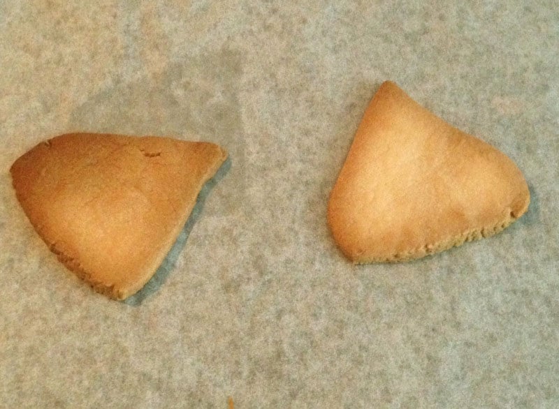 • Mettete i triangoli di pasta frolla in una teglia ricoperta di carta da forno e infornate.