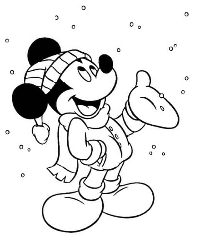 Un disegno di Topolino sotto la neve in inverno, un disegno per bambini da stampare gratuitamente e da colorare. Per stampare il disegno, basta scorrere l’articolo verso il basso e cliccare sul disegno dove segnato: si aprirà una seconda finestra in formato pdf, con il disegno pronto per essere stampato o scaricato.