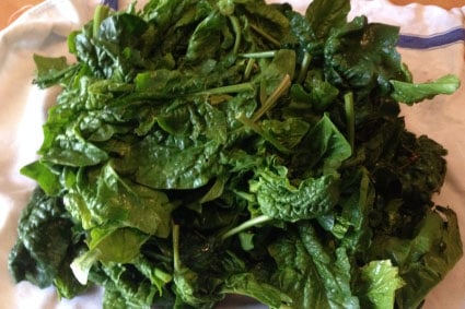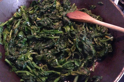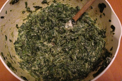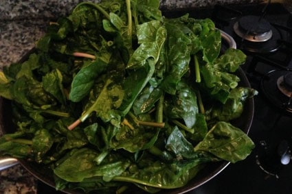 - Fate saltare gli spinaci in una padella, con un cucchiaio d’olio d’oliva, per qualche minuto. Salate e pepate q.b.