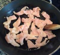 - Preparate la salsa béchamel. Accendete il forno a 220°C. Tagliate il pollo in pezzi. Tagliate i funghi a lamelle. Scaldate un cucchiaio d’olio in una padella, aggiungete i funghi e fateli rosolare fino a quando l’acqua non sarà evaporata. Togliere i funghi dalla padella e tenerli da parte.