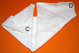 - A seconda della misura del tovagliolo, piegarlo in 3 nel senso della lunghezza (da 50 a 60 cm di lunghezza) o in 2, per i tovaglioli più piccoli.