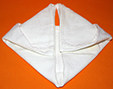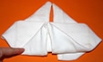 - Arrotolare il tovagliolo su se stesso. Infilare le estremità una dentro l’altra, in modo che il tovagliolo rimanga chiuso e arrotolato.