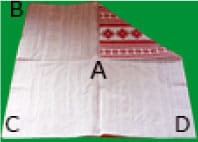 - Appoggiare il tovagliolo completamento aperto con il lato stampato (se esiste) sotto, verso il tavolo. Piegare l’angolo A verso il centro del tovagliolo.
