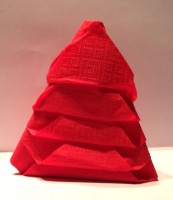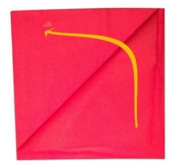 - Ripiegare l’angolo destro in basso del primo foglio del tovagliolo verso la punta sinistra, in alto. Attenzione a non schiacciare troppo, la piega deve rimanere morbida.