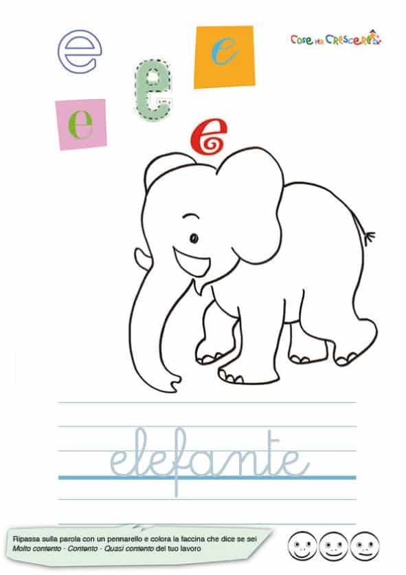 • Dopo avere stampato tutte le schede del quaderno, spiegare al bambino come colorare le schede e ripassare con un pennarello sopra alla scritta. Chiedergli di valutare il proprio grado di soddisfazione, colorando la faccina che corrisponde.