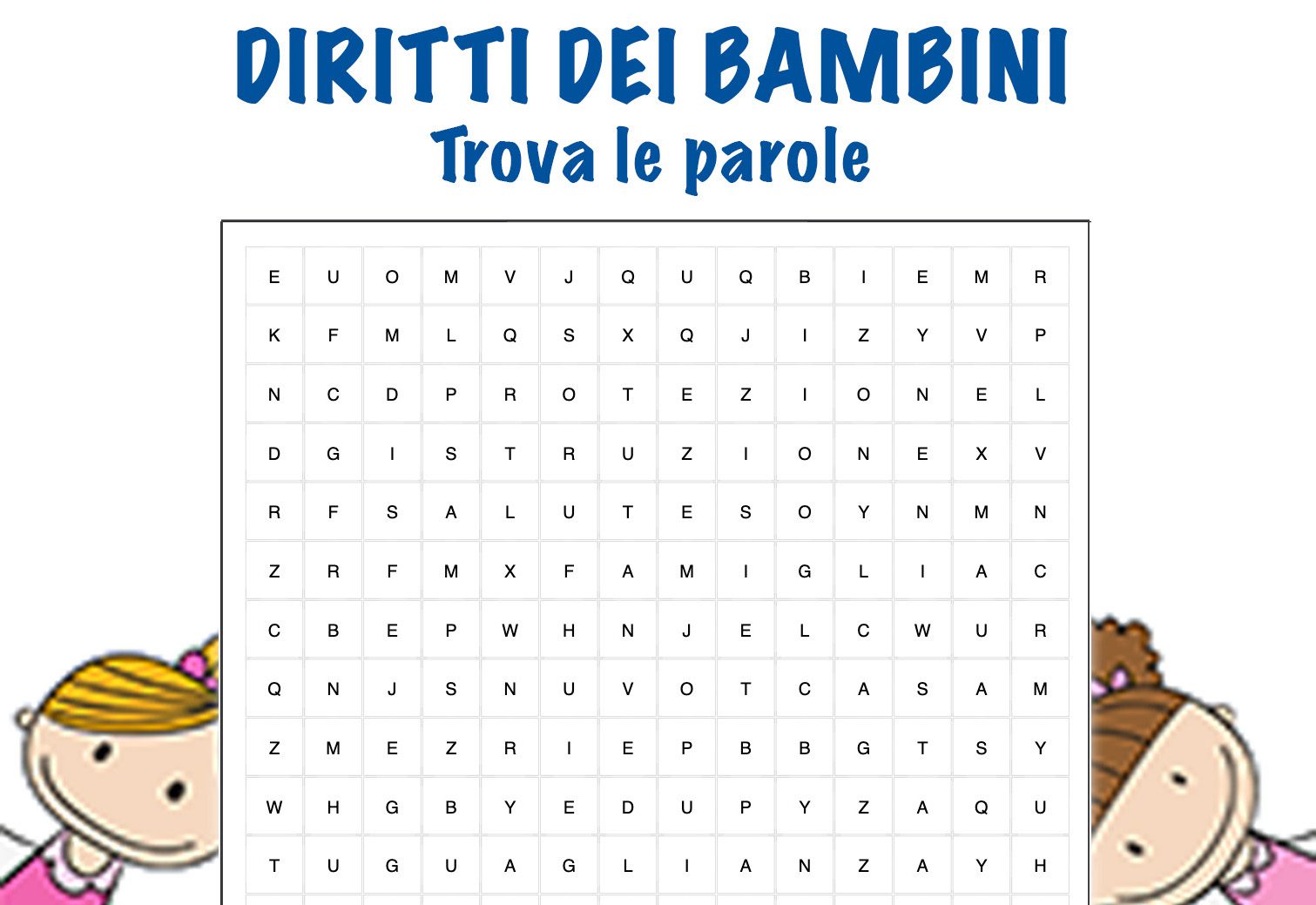 Come risolvere le parole nascoste sui Diritti dei bambini