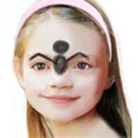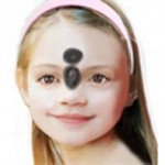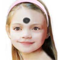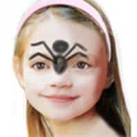 Disegnate un cerchio nero al centro della fronte del bambino: sarà la testa del ragnetto. Potete usare una matita nera o un pennello con colore per face painting.