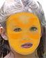 - Applicare uno strato di trucco arancione sull’insieme del viso evitando bocca e contorno degli occhi.